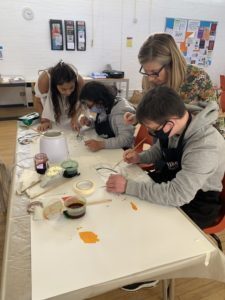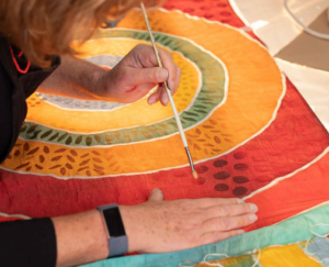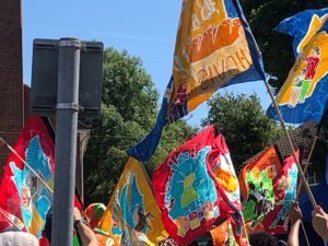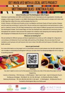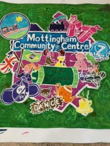 Community Arts company Kinetika came to Mottingham in February and April 2022 and worked with local groups to design and paint silk flags using the Batik method.