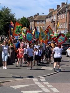Our colourful procession went to the end of Kimmeridge Road and back.