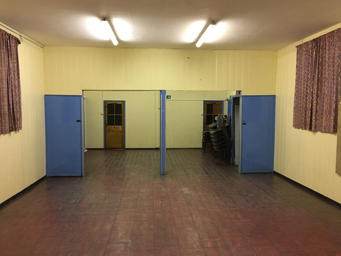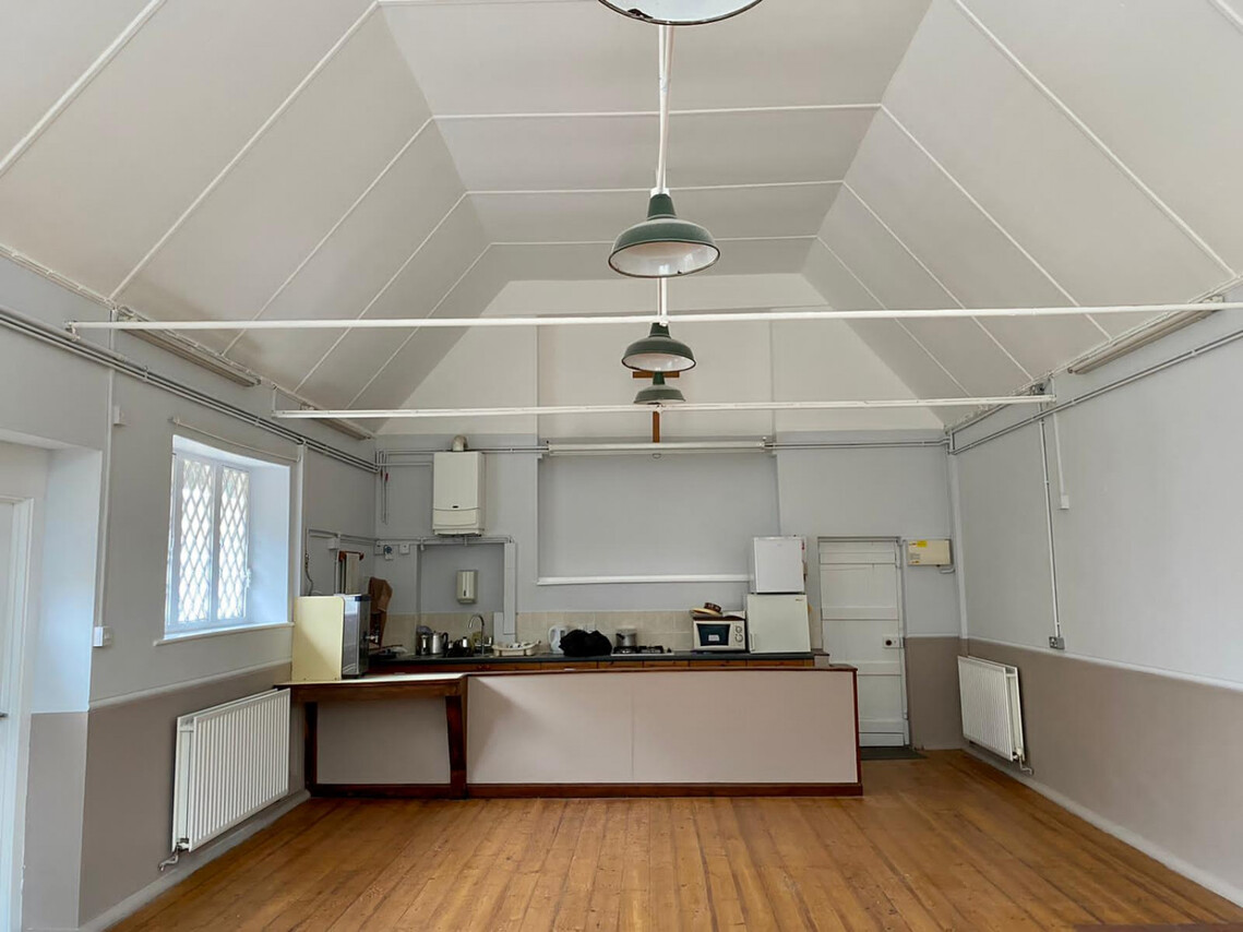 The Small Hall can be divided into two separate areas, one measuring 16ft x 18 ft, the other 24ft x 18 ft making a total of 40ft x 18 ft. There is also direct access to a small kitchenette