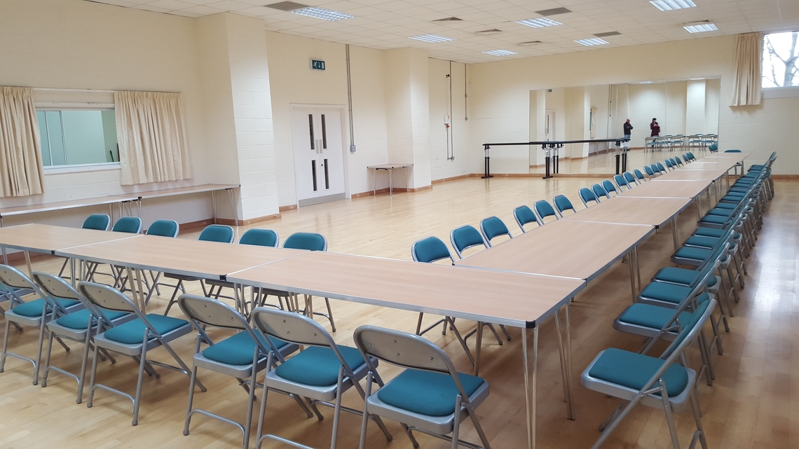 Hire cost: Sports hall £20.00 per hour. Upstairs hall £15.00 per hour.