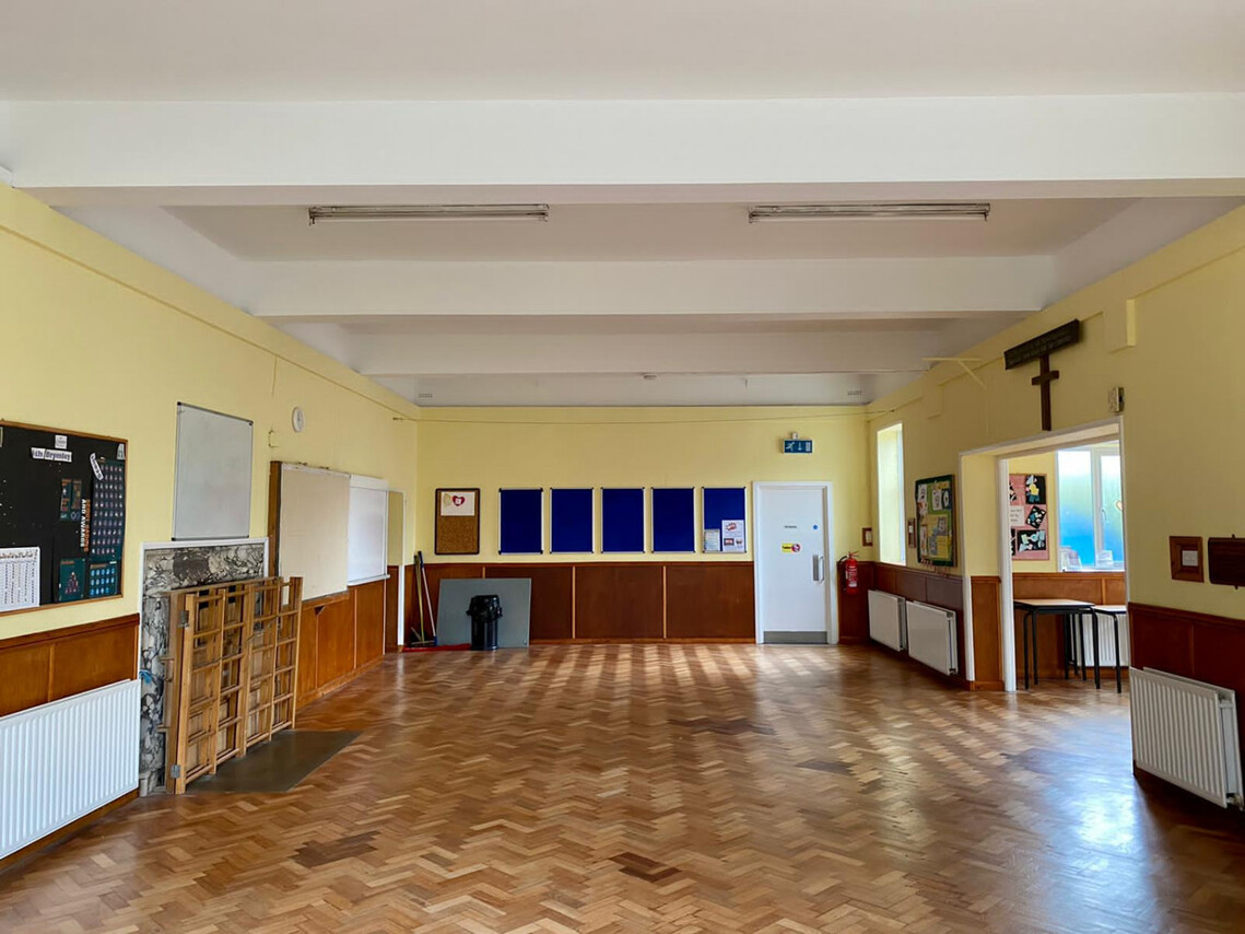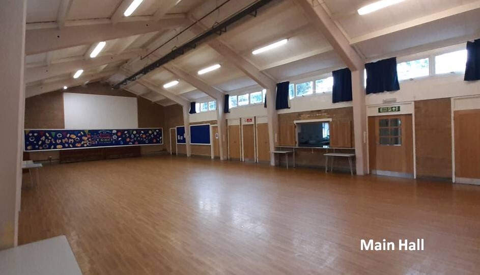 Type of space/s available: Sports hall, smaller upstairs hall, small office, kitchen, artroom.