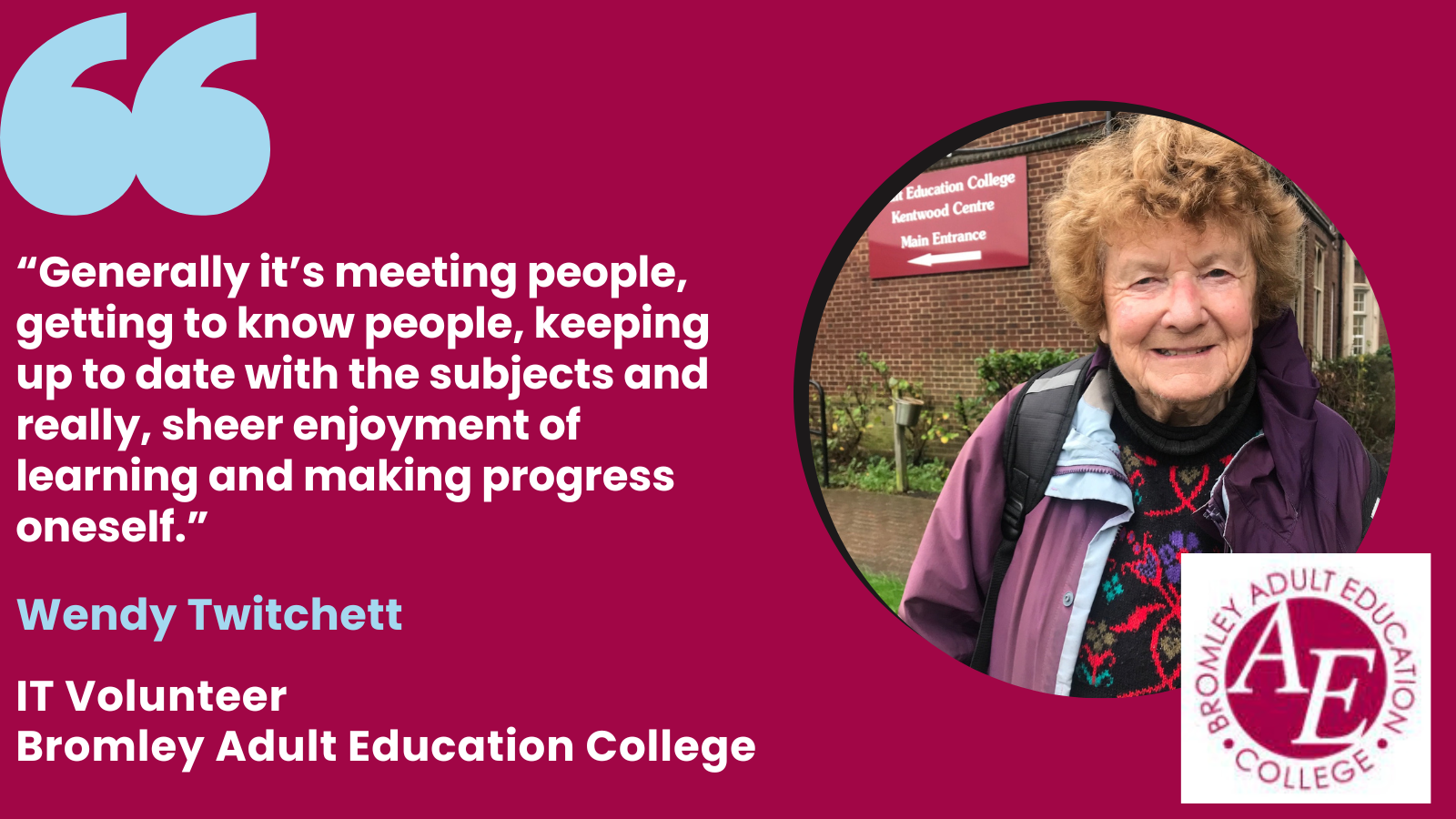 The college is always keen to welcome new volunteers who share a love of learning and are keen to promote opportunities for adults. Wendy told us what she enjoys most about the role: